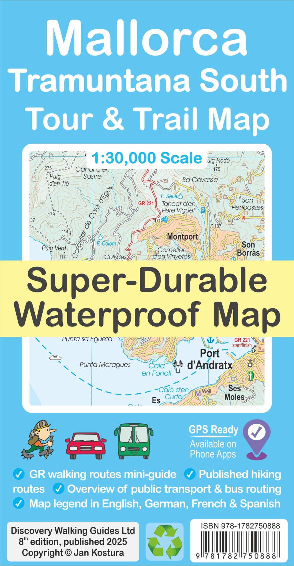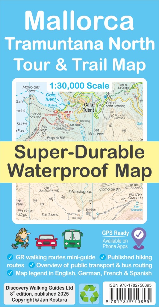 To get the best out of a trip to the Tramuntanas, a large scale and up-to-date map is essential. The best maps you will find are published by Discovery Walking Guides, who have just released two large scale maps to cover the North Tramuntana and the South Tramuntana.