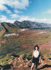 WARM WEATHER WALKERS, escaping to warmer climes when winter bites at home, exploring in t-shirt, shorts, sunhat and sun-cream under a blue sky, sweating as they gain the heights, then